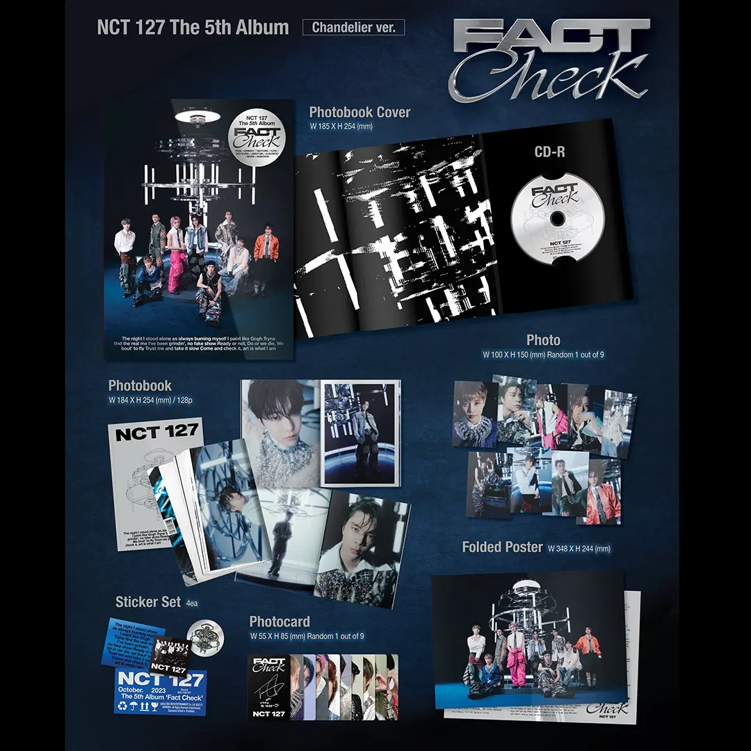 Incluye: CD, portada, libro de fotos (72 páginas), sobre, póster de agradecimiento, polaroid (aleatorio 1 de 7), póster plegado (aleatorio 1 de 7), photocard (aleatorio 1 de 7).