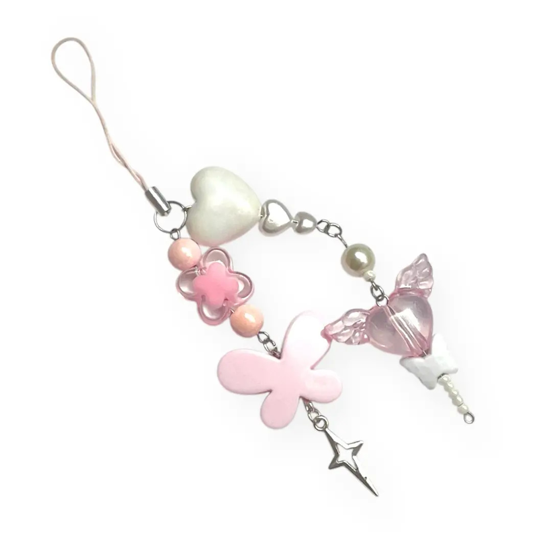 Colgante kawaii en tonos rosados — el tipo de accesorio que le da personalidad a cualquier mochila, bolso o llavero al instante.